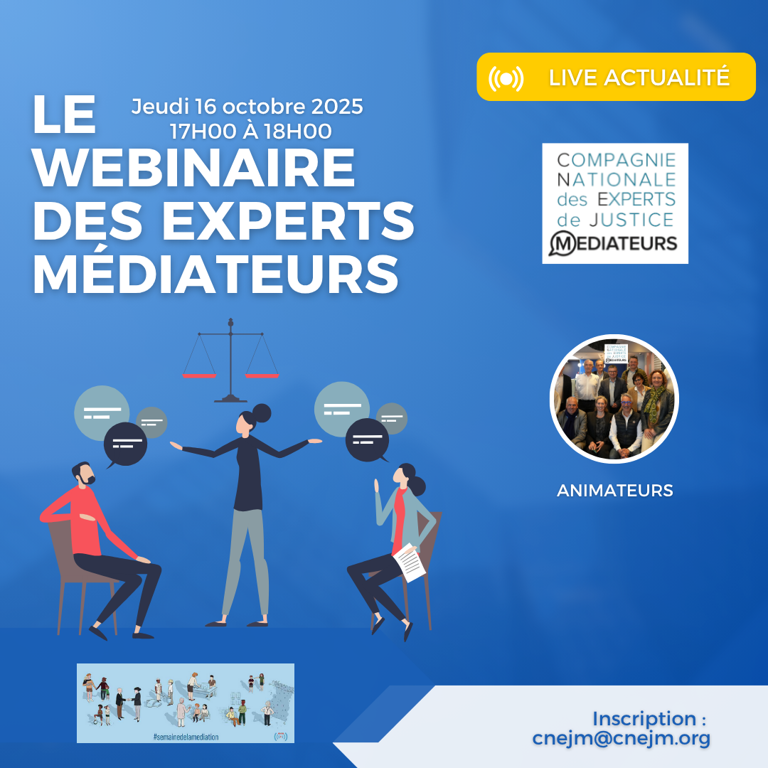Le webinar des experts médiateurs 16 octobre 2025 - en ligne • Télécharger le document |